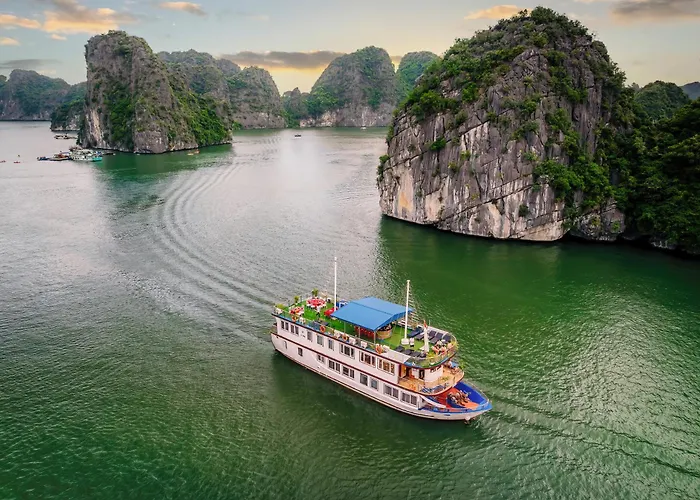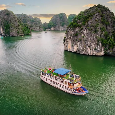 Ha sido una noche apasionante de camino a Ha Long. Me ha gustado habitación superior con cama queen con vistas al mar.